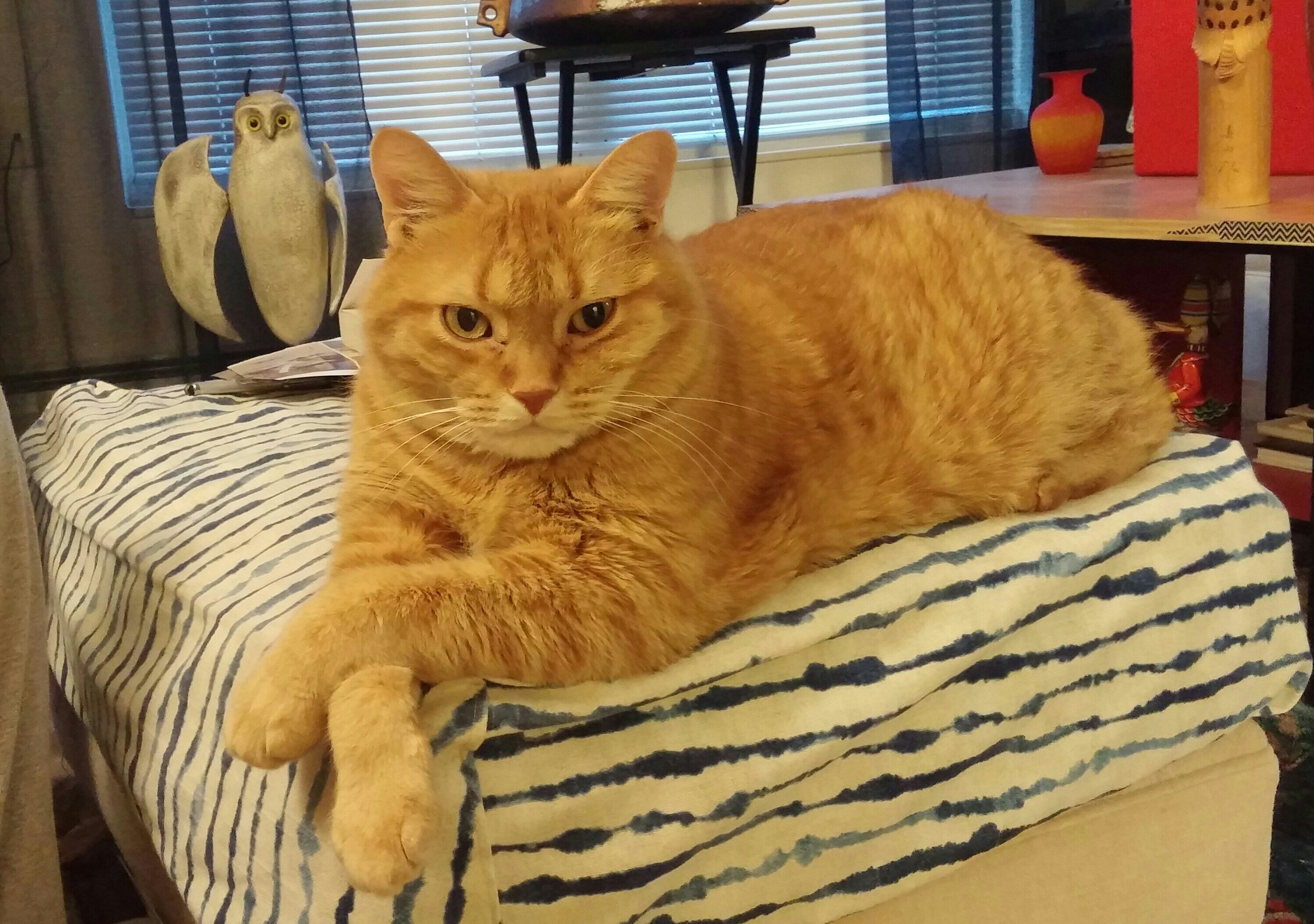It’s been twenty days of playing musical cats. Mimi gets my bedroom, Walter gets the spare room. Sometimes we switch rooms. One or the other is always out, but poor Mimi is stuck in my bedroom all day when I work.